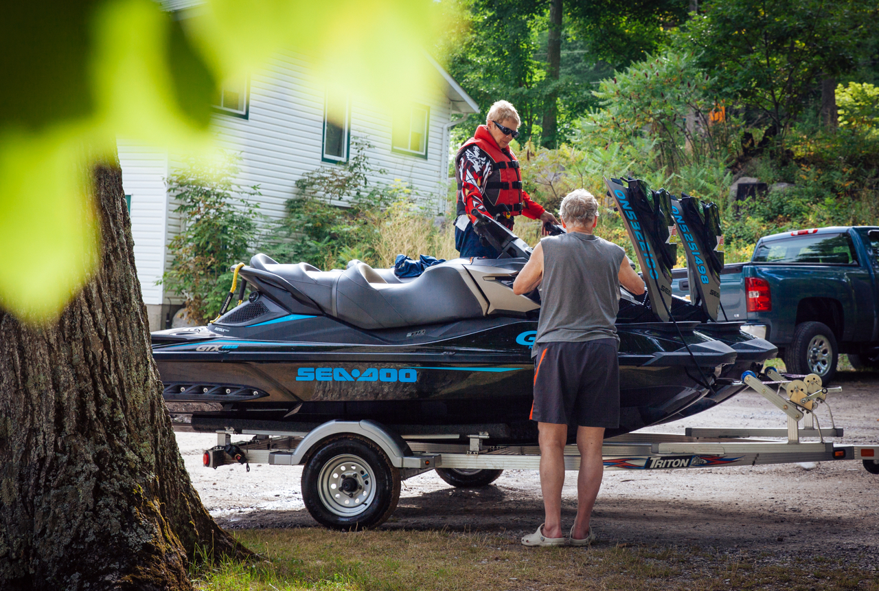Each summer, I travel all over to explore different waterways on my PWC adventures. So my machinery prep also includes my Triton PWC trailer and SUV tow vehicle. On the PWC trailer, I re-pack or replace the wheel bearings. I also check all tires (including the spare) for cracks, leaks, uneven wear and correct pressure. At the same time, I perform a complete visual inspection of the axle, springs, bunks, wiring harness and plug. Also winch, tongue jack, plus coupler and safety chains. Then I check that my trailer licence plate is still well secured. I don’t test the lights on my trailer until after I inspect and clean my SUV’s electrical receptacle to ensure a good connection. Tip: if you’ve acquired a jet ski that’s new to you since the previous season. Don’t forget to make sure it fits on your existing trailer bunks. And that it’s still within safe load bearing capacity – and re-familiarize yourself the best trailering advice.