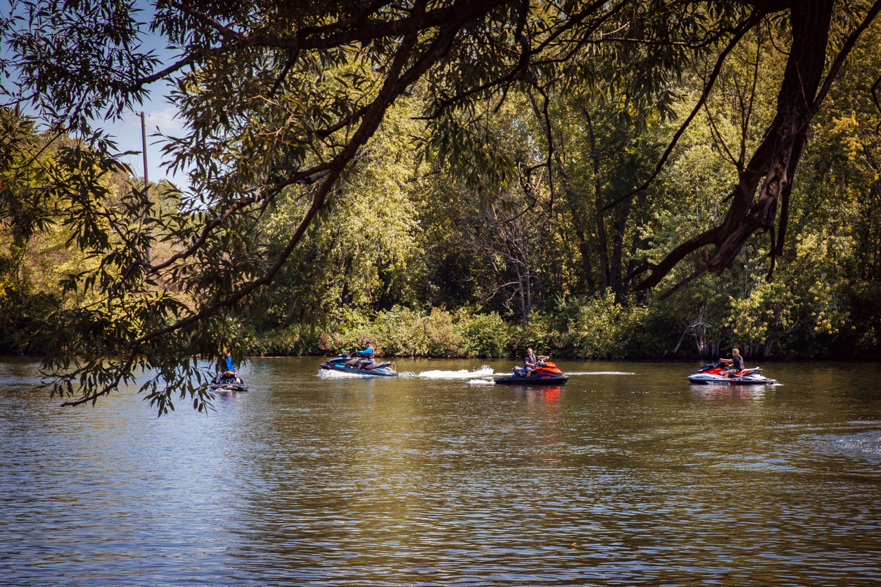 This flexible distance day trip provides easily navigable waters, adequate depths, regular marker buoys, active local populations who flag errant rocks, and available recreational boating services and amenities. But take note that on windy days, Rice Lake can be challenging. Also, this Sea Doo ride is good for busy weekends because there’s only one potential delay at one lock on each of the two options described. Being relatively well protected, the Otonabee River is also great for a fall colours Sea Doo tour.