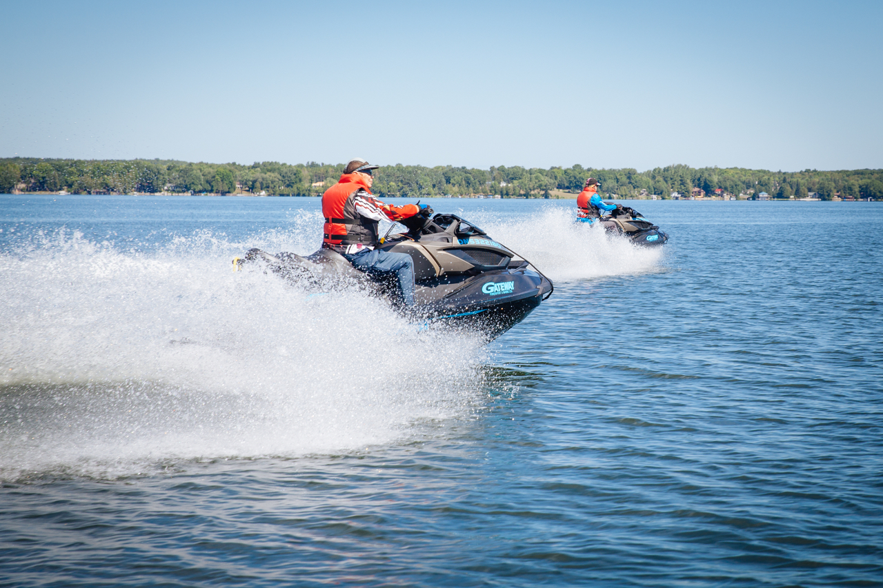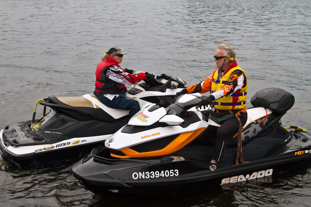 Besides the requirement to always wear a properly sized PFD, every PWC must have a sound signalling device (a whistle or air horn) and a watertight flashlight or 3 flares. You also need personal identification, a Pleasure Craft Operator’s Card and to be aware of the laws.